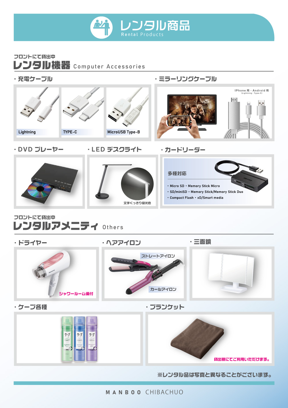店内設備案内EQUIPMENT INFORMATION