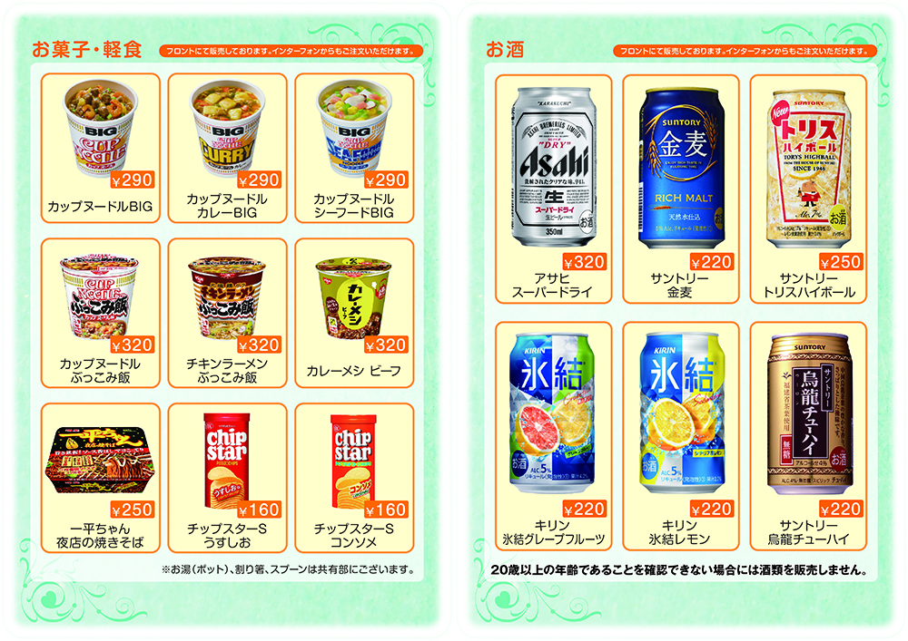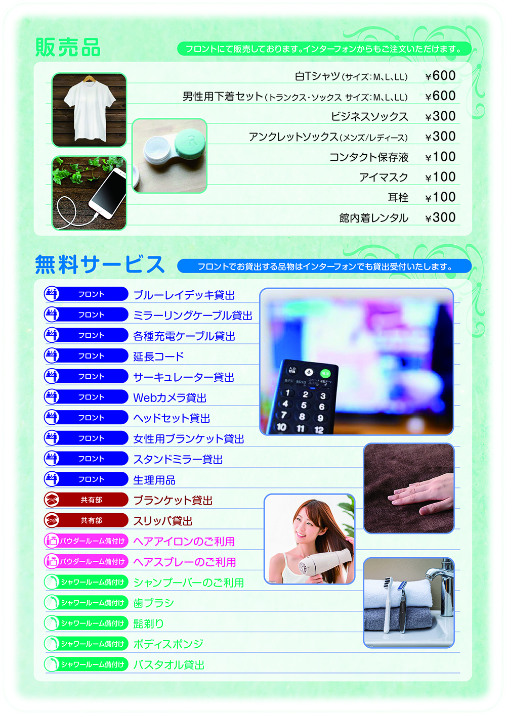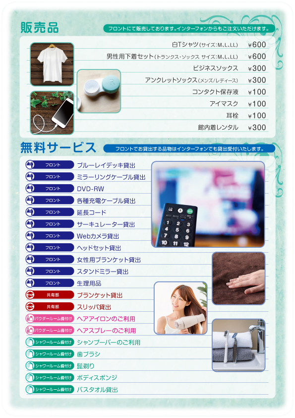 店内設備案内EQUIPMENT INFORMATION