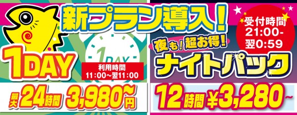 ・ナイト12時間パック(受付時間 21:00~00:59) 3280円~(週末+200円)