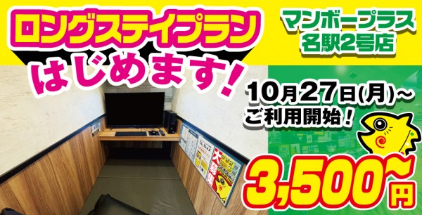 マンボープラス名駅2号店 10/27(月)からロングステイプラン開始!