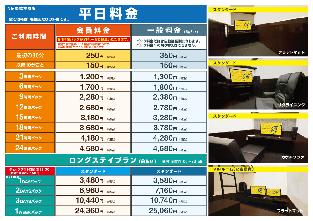 ※休日料金は金・祝前は18時以降、土・日・祝日に適用されます。予めご了承ください。