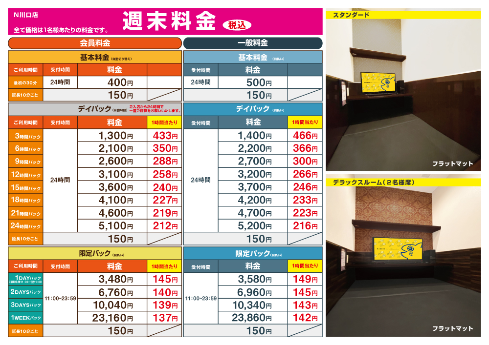 ※休日料金は、金・土・日・祝前・祝日に適用されます。予めご了承下さい。