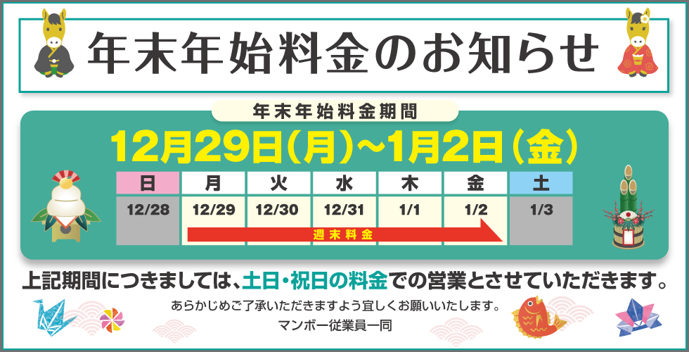 ※年末年始やGWなどはご利用料金が変更になる場合がございます。