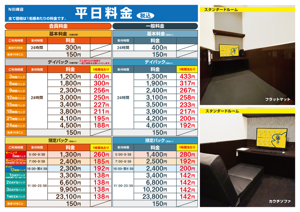 ※平日ナイトパックに関して、木曜・祝前々日の受付時間は翌0時(日付が変わる)迄となっております。