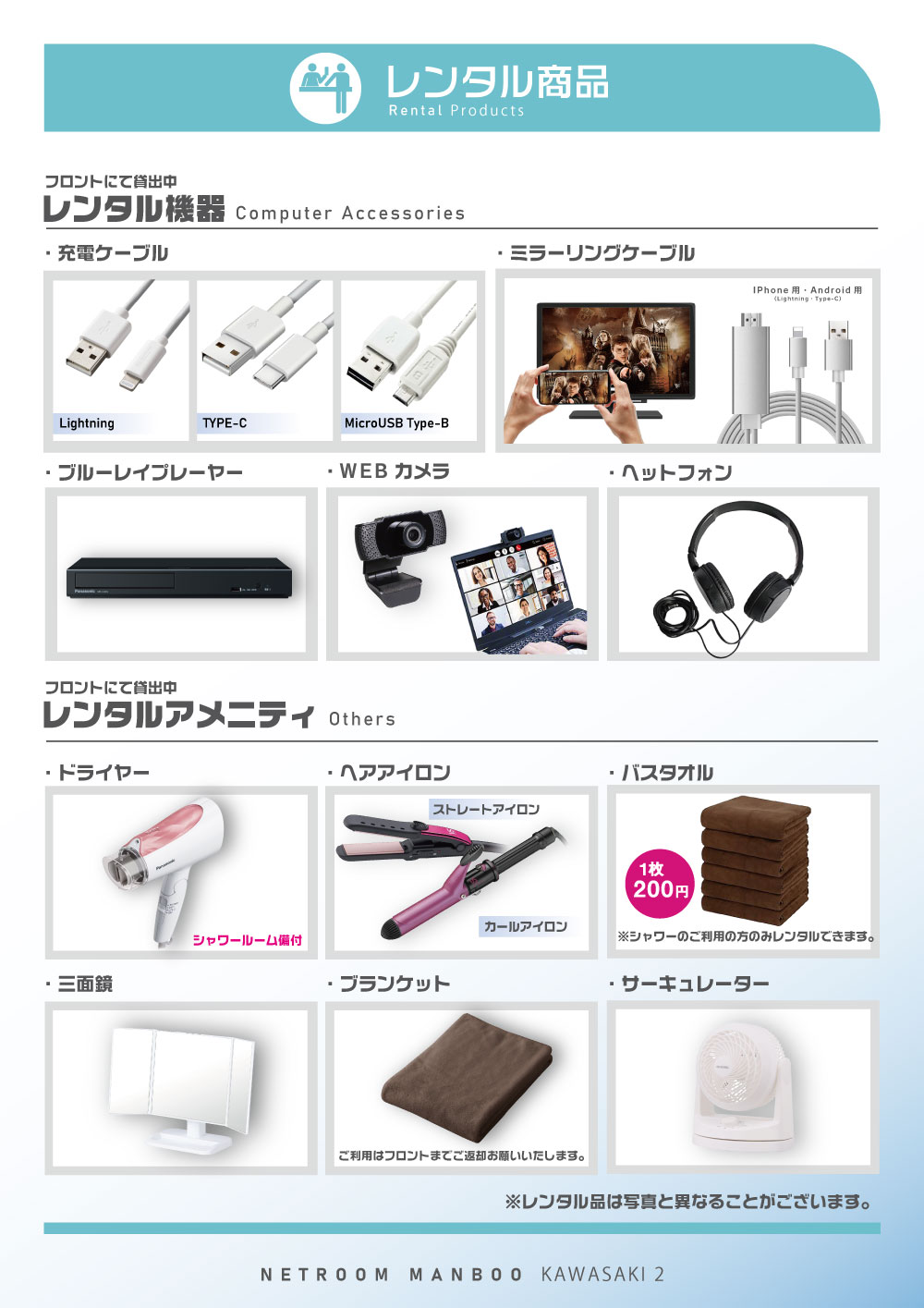店内設備案内EQUIPMENT INFORMATION