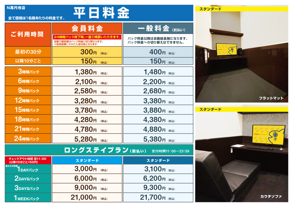 ネットルームマンボー高円寺店は、JR中央線高円寺駅から徒歩1分と大変近い場所にあり、短時間の休憩や仮眠目的等でのご利用に向いております。
