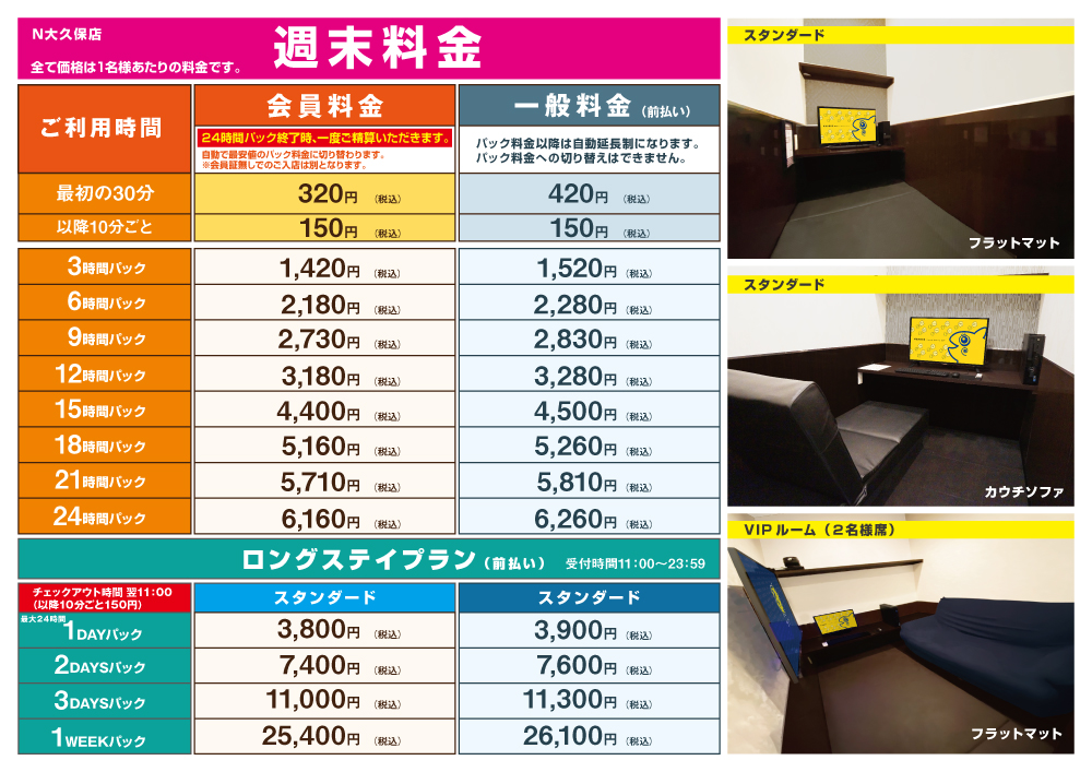 ※休日料金は、金・土・日・祝前・祝日に適用されます。予めご了承下さい。