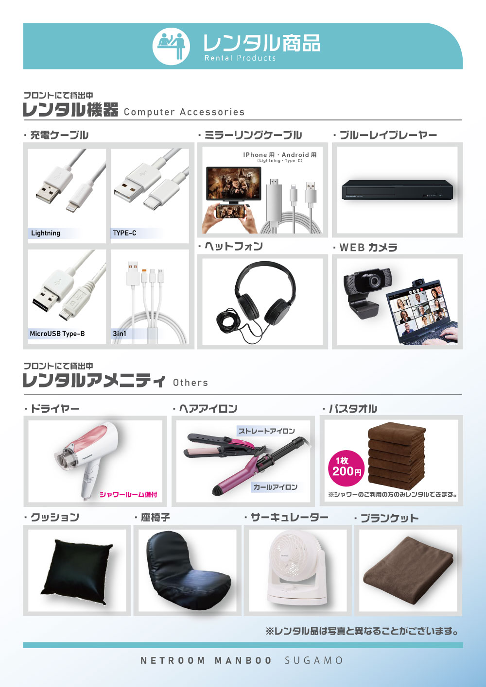店内設備案内EQUIPMENT INFORMATION