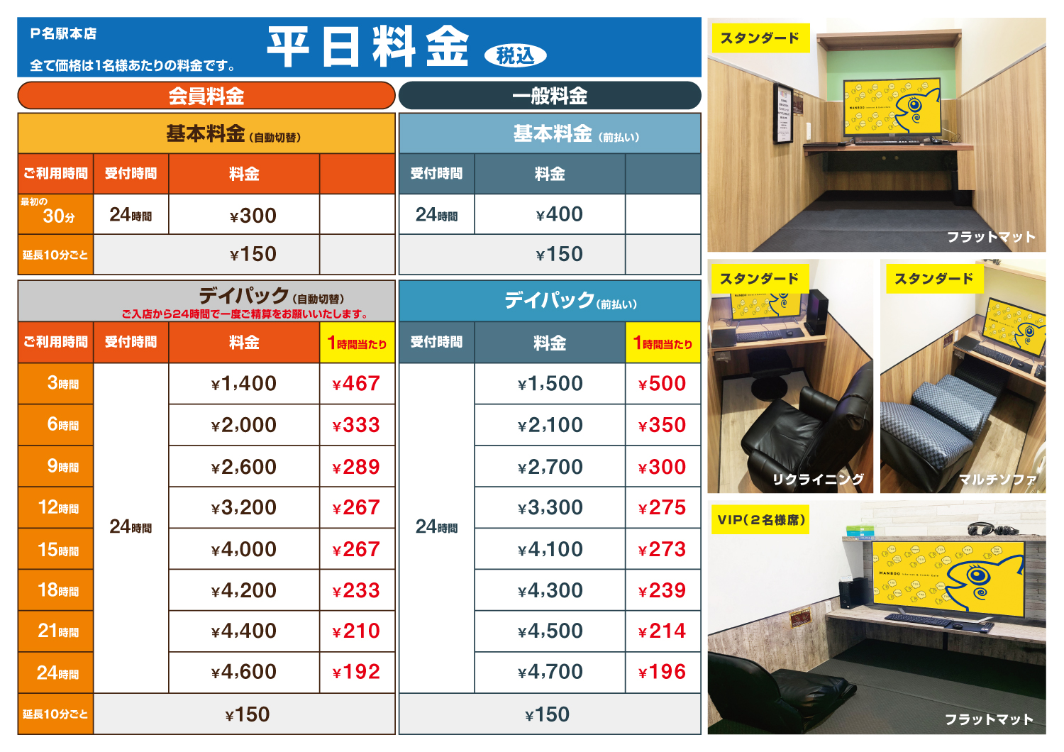 料金表でご不明な点は、店舗へお問い合わせ下さい。