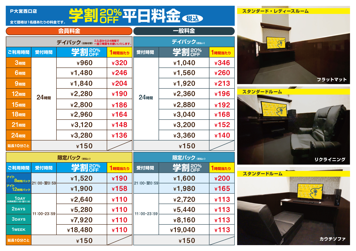 ※平日ナイトパックに関して、木曜・祝前々日の受付時間は翌0時(日付が変わる)迄となっております。
