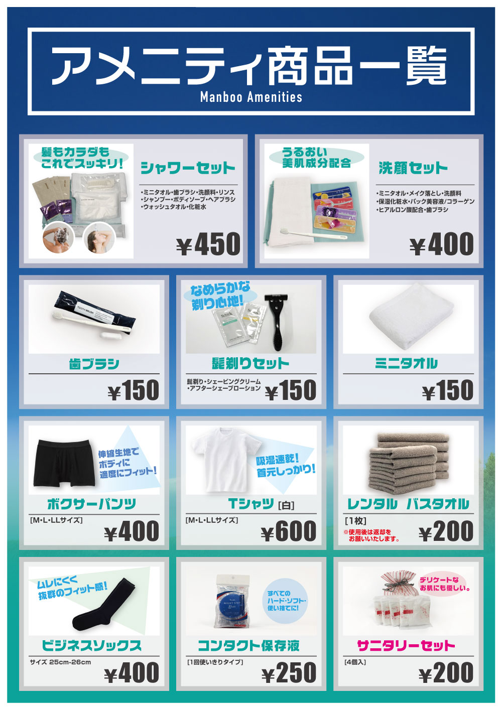 料金表でご不明な点は、店舗へお問い合わせ下さい。