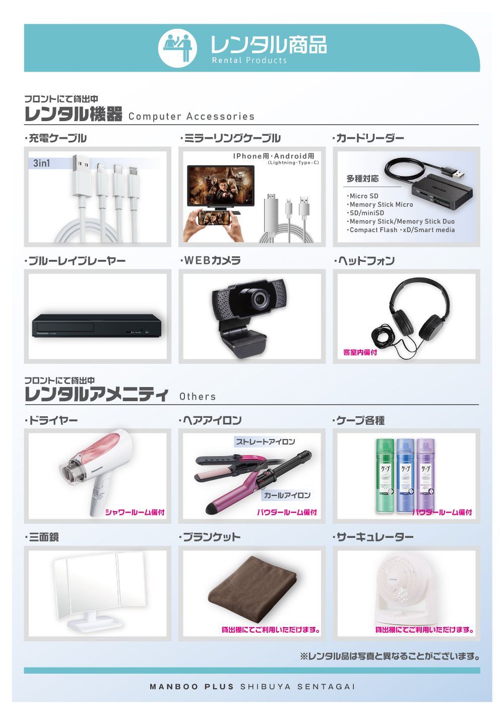 店内設備案内EQUIPMENT INFORMATION