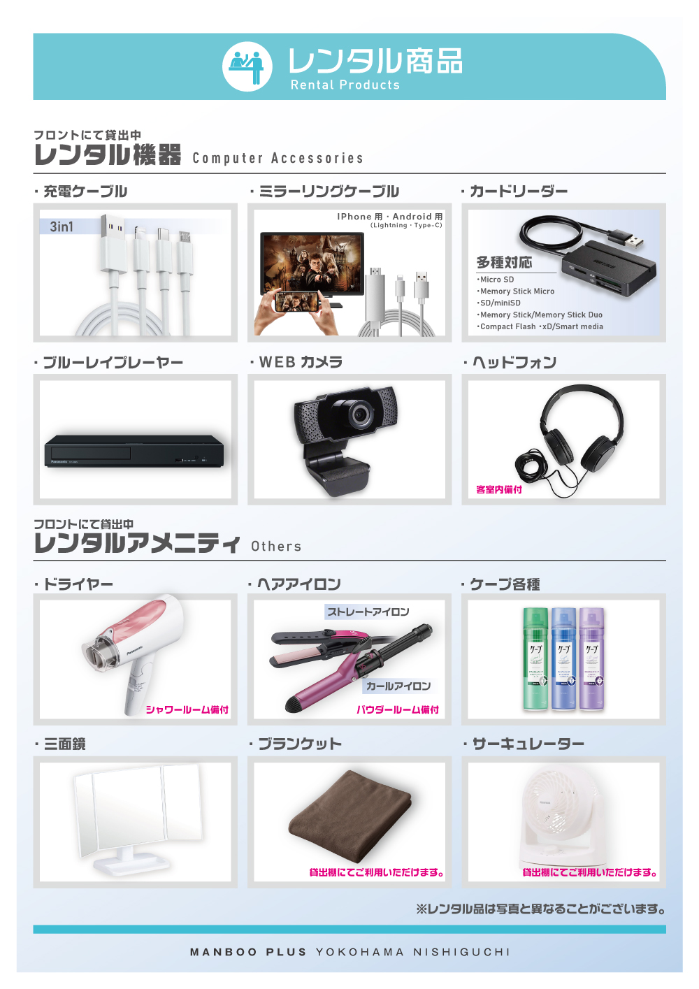 店内設備案内EQUIPMENT INFORMATION
