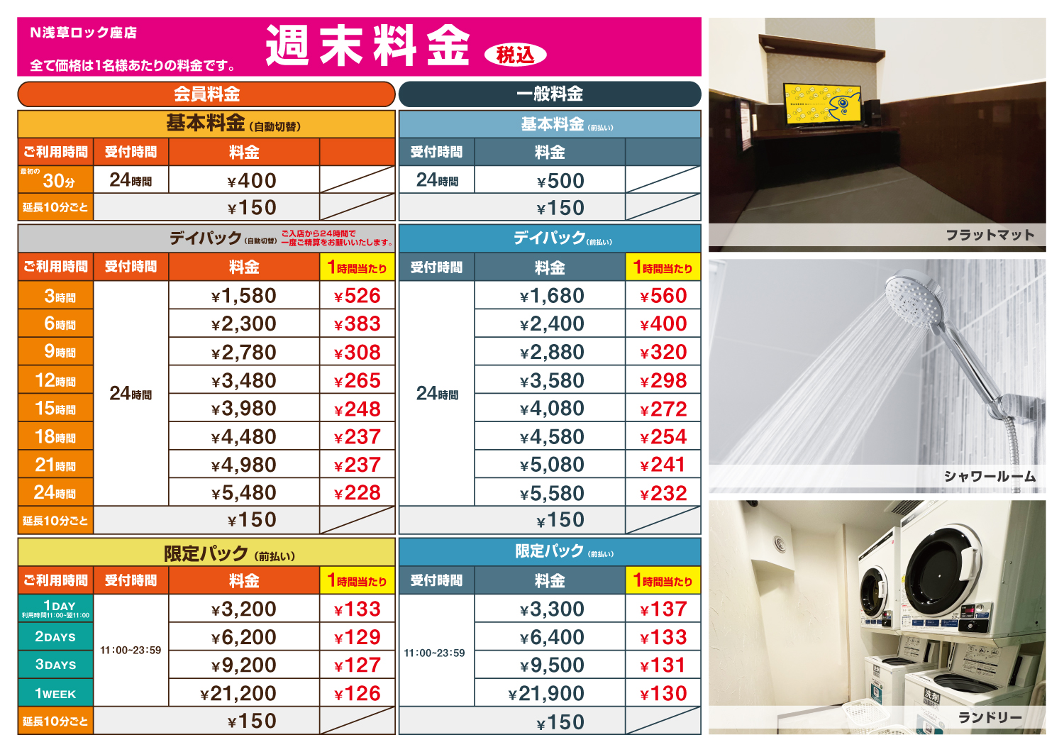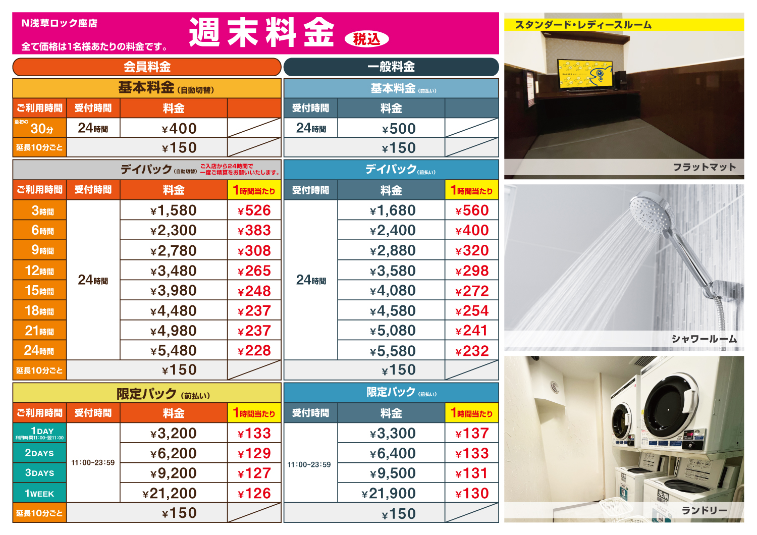※休日料金は金・祝前は18時以降、土・日・祝日に適用されます。予めご了承ください。
