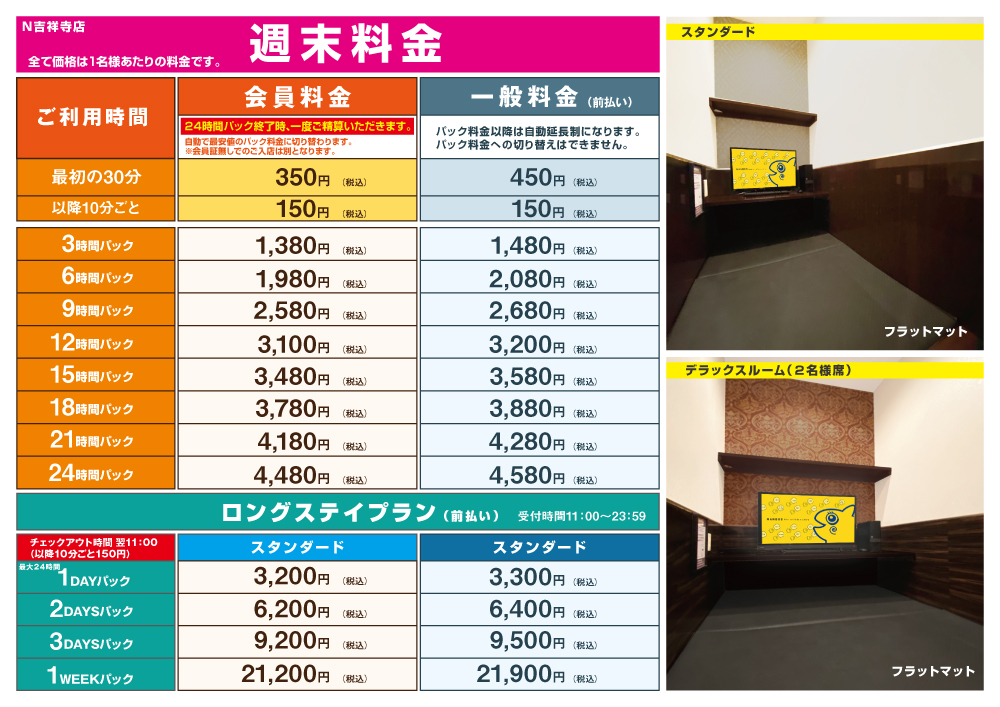 ※休日料金は金・祝前は18時以降、土・日・祝日に適用されます。予めご了承ください。