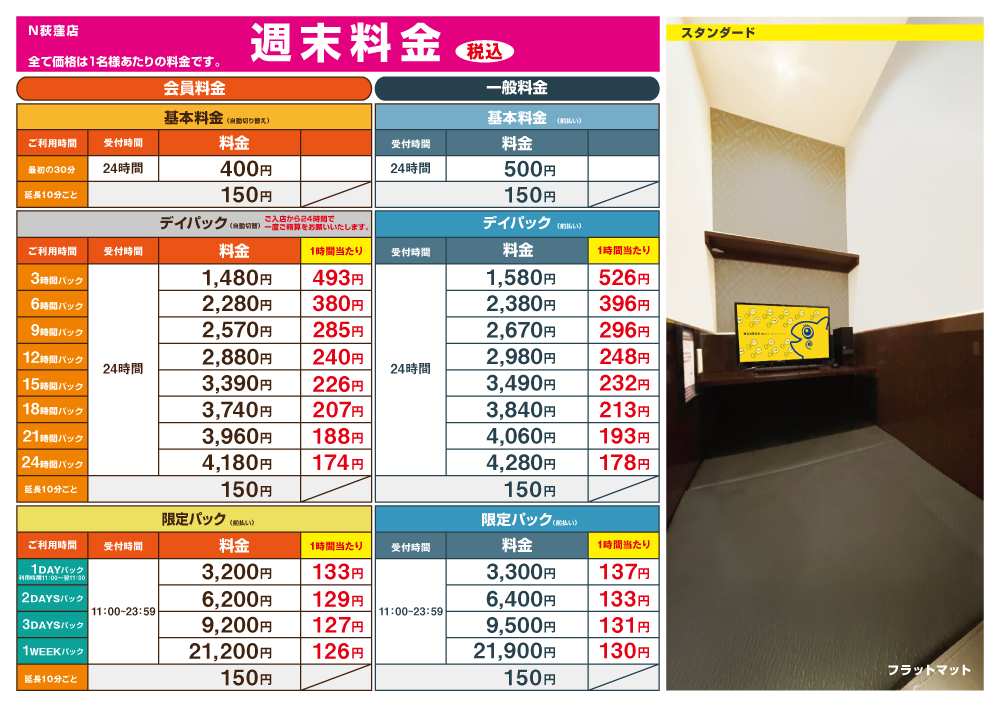 ※休日料金は、金・土・日・祝前・祝日に適用されます。予めご了承下さい。