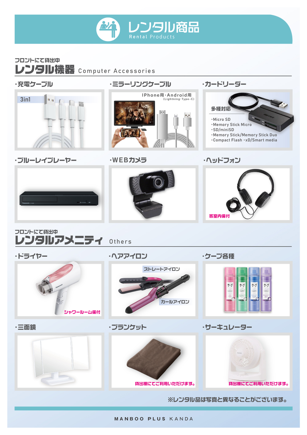 店内設備案内EQUIPMENT INFORMATION