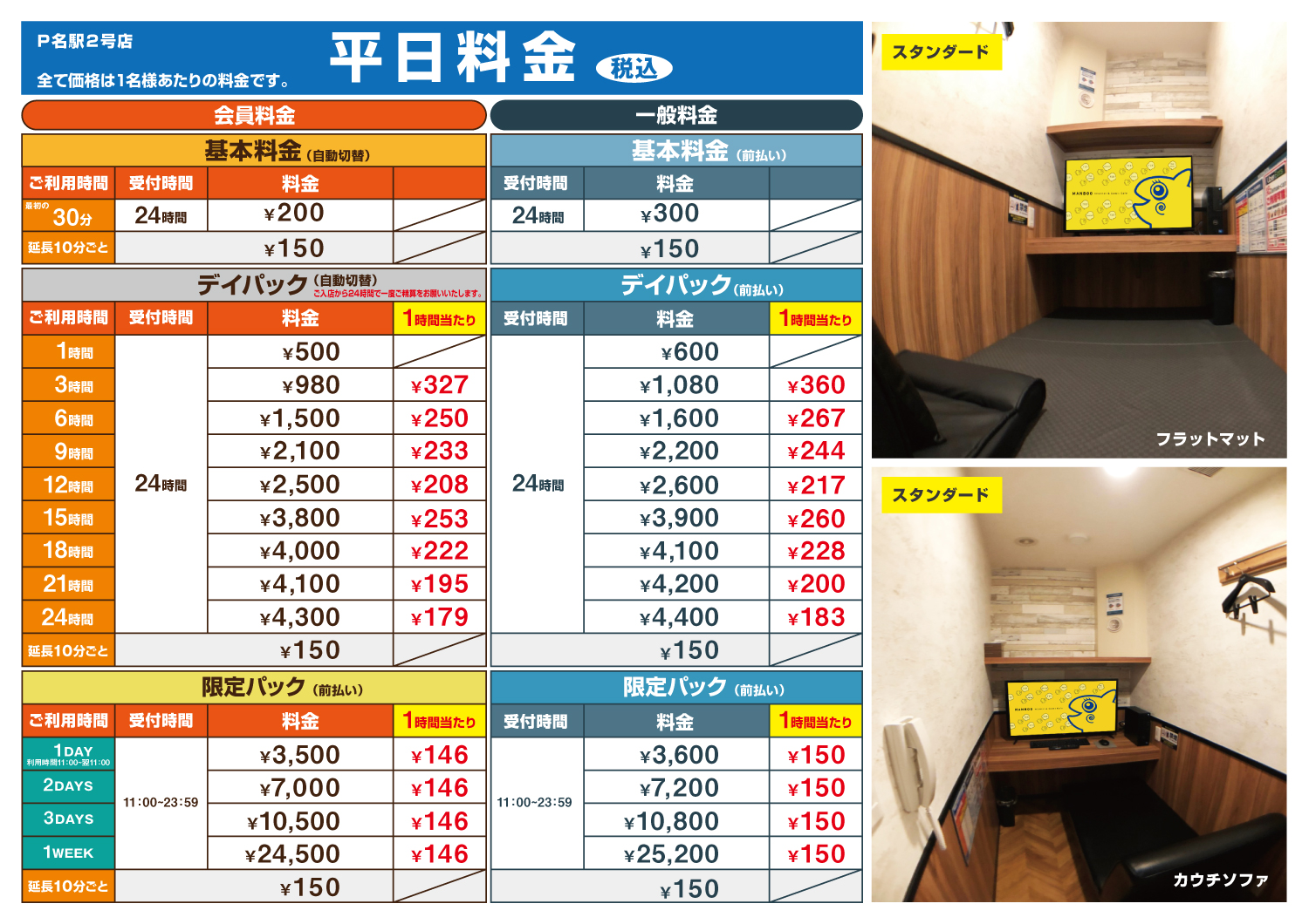 ※休日料金は金・祝前は18時以降、土・日・祝日に適用されます。予めご了承ください。
