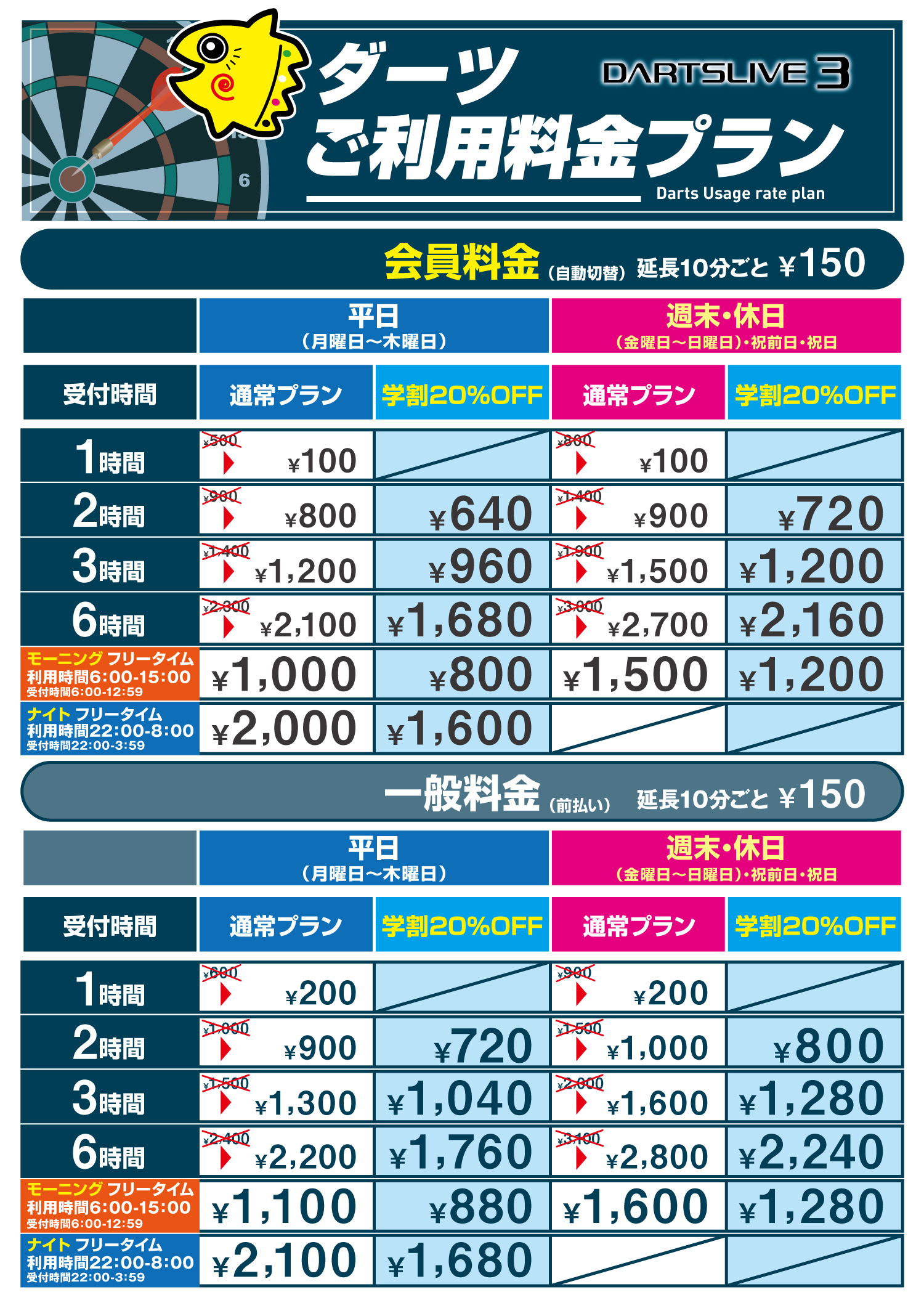 ※平日ナイトパックに関して、木曜・祝前々日の受付時間は翌0時(日付が変わる)迄となっております。