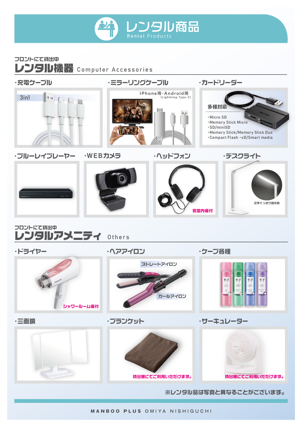 店内設備案内EQUIPMENT INFORMATION