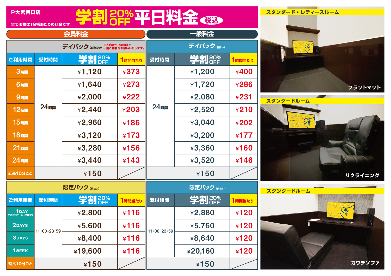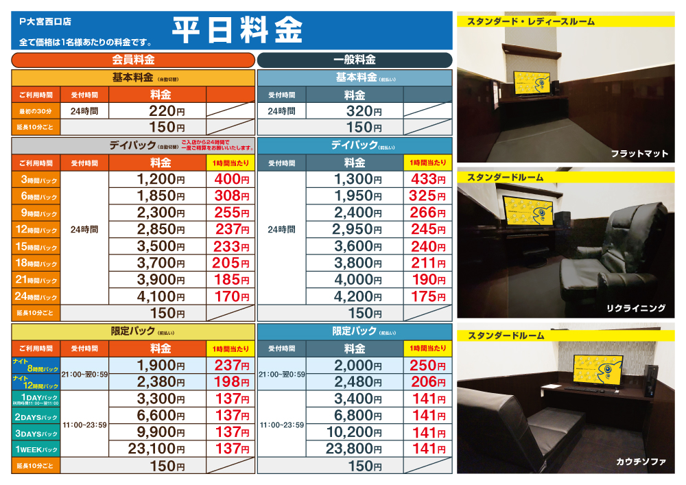 ※平日ナイトパックに関して、木曜・祝前々日の受付時間は翌0時(日付が変わる)迄となっております。